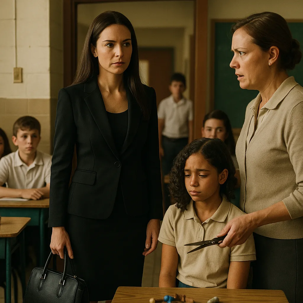 — Señora Martínez, azafady, ny zanakao dia nanitsakitsaka ny fitsipiky ny sekoly. Ny volony dia tsy tokony ho lava mihoatra ny soroka araka ny fitsipika—